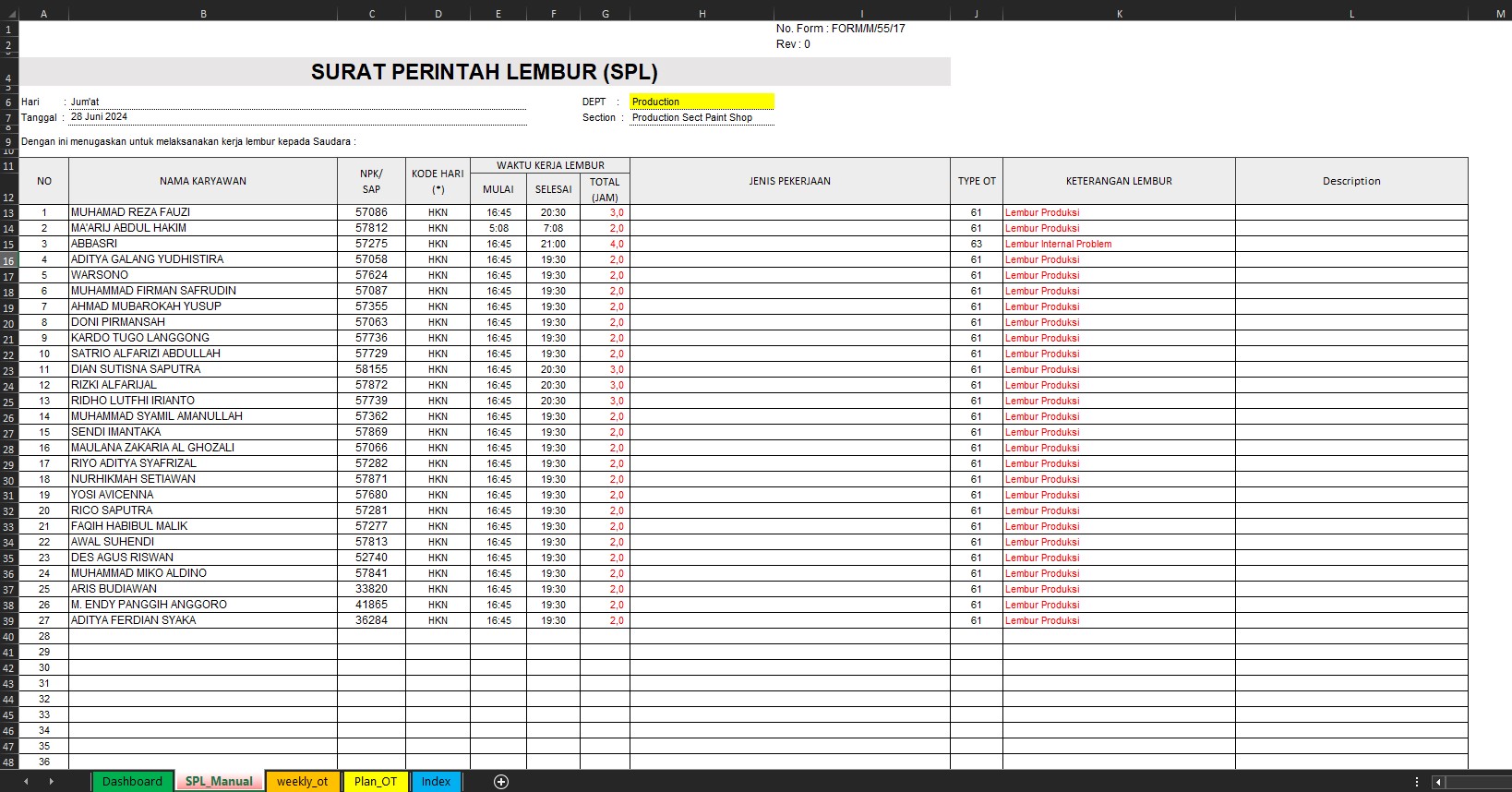Project ini tentang Monitoring, Pendataan dan Pelaporan Lembur komprehensif.