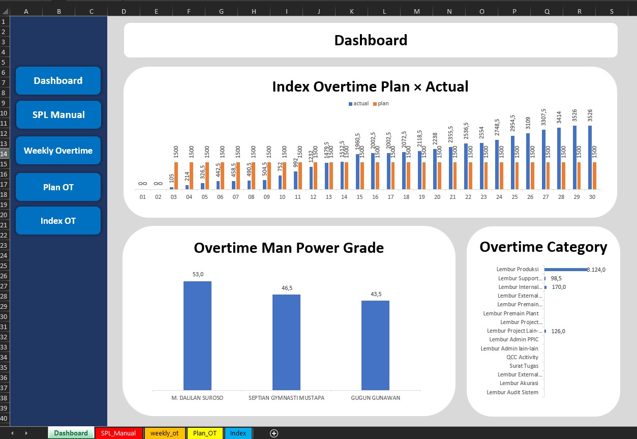 project monitoring ini dirancang menggunakan VBA Excel untuk membantu manajemen dalam memantau lemburan karyawan secara efektif. Dengan sistem ini, pengguna dapat dengan mudah mencatat dan melaporkan jam lembur, sehingga meminimalisir kesalahan dalam penghitungan waktu kerja.